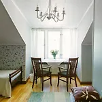 هناك 8 غرفة مع الشرفة ومنطقة الجلوس. وتوفّر بعضها جهاز تلفزيون بالإضافة إلى مكانيات القهوة والشاي. لوازم كيّ الملابس والمكواة واللوح الكيّ متاحة لراحة الضيوف. البيديت ومقصورة الدوش والمرحاض المنفصل متاحة في الحمامات الخاصة.